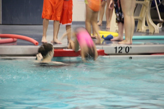 I signed Kayli up for a two-week stint of daily swimming lessons, 45 minutes per day. On the last day, they invited parents to stay and witness the new skills our children had aquired...